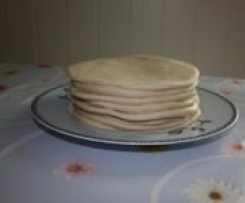 " Modus „Teig kneten“" kneten. 8 Kugeln formen mit Teigrolle aufrollen so groß wie Pfannekuchen und mit Margarine bestreichen. restliche teige genau so behandeln und aufeinander stufen außer das letzte stück nicht mit Margarine bestreichen. 2 Stunden im Kühlschrank ruhen lassen.