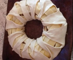 Der Kranz wird nun 30 Minuten bei 220 Grad Ober/Unterhitze im Backofen gebacken, auf der untersten Einschubschiene im Backofen! Bitte immer daran denken, jeder Backofen reagiert anders, meiner braucht 30 Minuten, andere kommen auch mit 25 Minuten aus. Bitte selber mal testen.