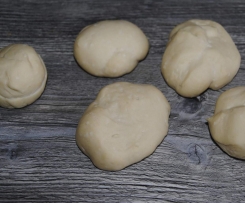 Teig kurz durchkneten und eine lange breite Wurst fromen. Diese dann in 15 Stücke teilen.