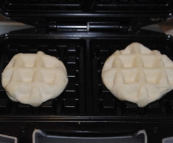 Nun auf jede Seite des Waffeleisens ein Teigstück legen. Diese dann für 6 Min. backen.
