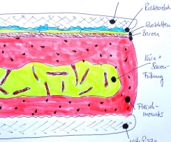 Die zweite Pizza kopfüber auf den Klops legen und fertig ist das fette Monster…*siehe auch meine "mega Skizze"