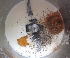Sahne, Eier, Muskat und Pfeffer in den
