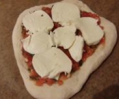 - die Pizzen aus dem Ofen holen und mit der Tomatenmasse bestreichen und mit Mozarella belegen, für weitere 7 Minuten in den Ofen geben und anschließend heiß servieren
