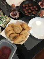 ich muss jetzt einfach dieses Rezept mal wieder aus der Versenkung der Rezeptwelt herausholen. Es ist echt zu toll, als dass es vergessen wird. Seitdem ich eine Fritteuse habe, werden die Pisi auch so, dass man sie füllen kann. Das Rezept gehört zu den Gerichten, die in meiner Familie regelmäßig auf der Wunschliste stehen - meistens mit Gyros, Tzatziki und Krautsalat. Soooo lecker. Die Sterne habe ich ja schon lange vergeben