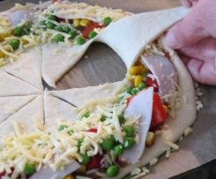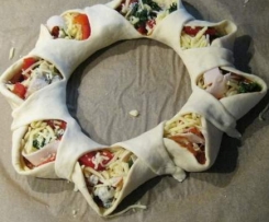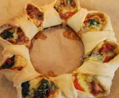 Den Teig hab ich von Thermimaus Gyros-Kuchen abgeschaut, die Ring-Idee stammt von Colette, gemacht hab ich es für Familie und Gäste. Bei denen kam es gut an, also teile ich das Rezept mit Euch!