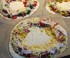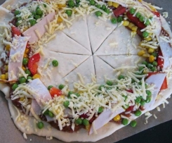 - Belag nach Wunsch, z. B. Salami-Streifen, Paprika, Mais, oder was ihr sonst so mögt