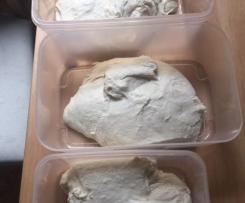 - Den Teig wie benötigt (siehe Tipps) teilen und jeweils wieder mit Hilfe von Mehl runde einzelne Teigbälle formen. In einer Schüssel mit passendem Deckel oder mit Frischhaltefolie gut verschlossen einige Stunden (mindestens 1-2) in den Kühlschrank stellen.