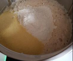 - Restliche Zutaten in den Vorteig geben, 9 Min./