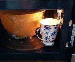 Teig zu einer Kugel formen, in die Schüssel geben, mit Frischhaltefolie abdecken und 1 Stunde an einem warmen Ort gehen lassen... - Ich stelle die Teigschüssel in die Mikrowelle und eine Tasse mit kochendes Wasser dazu, dadurch entsteht ein feuchtes & warmes Klima