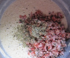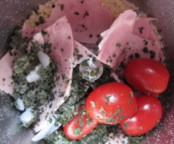 Die Schinkenmischung und die Gewürze hinzufügen .....
