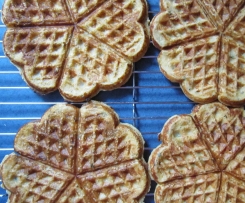 Das Waffeleisen mit Öl einreiben und aufheizen. Zwei bis drei kleine Kellen Teig zu goldbraunen Waffeln backen. Dabei den Teig im Waffeleisen gut verteilen, damit schöne Waffeln entstehen.