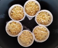 4. Die Förmchen einzeln mit hitzebeständiger Folie abdecken und in den Varoma stellen. Diesen dann verschließen. - Nun den