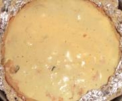 Die Eier-Schmand-Masse auf den Lauch-Lachs-Belag geben und die Tarte bei 180°C 30-35 Min. backen.