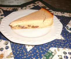 Teig in die Form gießen, Rosinen darauf verteilen. ACHTUNG: Teig ist sehr flüssig, Rosinen sinken gleich ab.