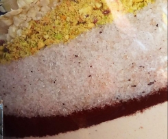 Pistazien schälen, dabei in ein Schälchen legen, nach dem Schälen mit den Händen durchwühlen, damit sich die Haut etwas lösen kann. Nüsse durch die Finger gleiten lassen, so dass die Haut ins Schälchen zurück fällt und in den