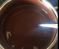 Die gesamte Schokolade mit der Butter in einem kleinen Topf zum schmelzen bringen, verrühren. - Schmetterling einsetzen. Eier, Zucker und Vanillezucker in den