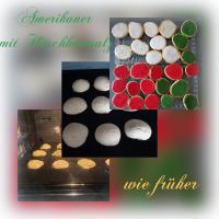 Mit einem El. Teighäufchen auf ein mit Backpapier belegtes Blech setzen (je einen El. voll Teig = 16 kleine oder je 2 El. = 8 große) und im vorgeheizten Ofen bei 180 C ca. 15 Min backen. Die Amerikaner sollen hell bleiben.