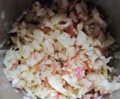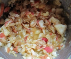 Die Äpfel 1 Sek. / St. 5 zerkleinern und umfüllen. Sollten noch sehr große Stücke dabei sein, diese noch mal kurz zerkleinern. Ich hatte eher süße Äpfel und habe sie noch mit dem Saft einer halben Zitrone vermischt.
