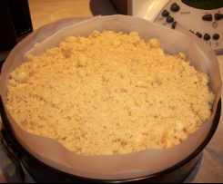 " Modus „Teig kneten“" ca. 2 Min ./ .zu einer krümeligen Masse .2--Dann eine Springform 26 cm mit fetten und die Hälfte der Streusel in die Form geben ,Als Boden andrücken und mit gemahlenen Haselnüssen bestreuen .