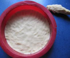 - .... und daraus einen ca. 4 cm hohen Rand drücken. Man kann natürlich auch die ganzen 2/3 Teig in die Form geben und daraus einen Rand ziehen.