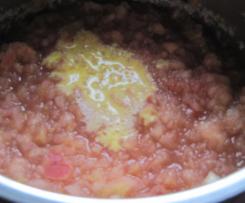 "Linkslauf" / St. 2-3 weich kochen. In der Zwischenzeit das Puddingpulver mit dem Apfelsaft anrühren und zu den gekochten Äpfeln geben. - Diese Masse 4 Min. / 90 °C /
