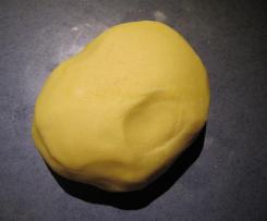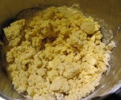 - Die Teigkrümel auf die Arbeitsplatte geben, von Hand nachkneten und zu einer Kugel formen. Diese in einem Gefrierbeutel ca. 2 Std. in den Kühlschrank legen.