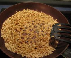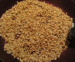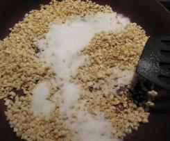 - Die Mandeln in einer Pfanne ohne Fett anrösten und den Zucker darüber streuen.