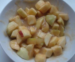 Äpfel schälen, entkernen und in Stücke schneiden. Apfelstücke mit dem selbst hergestellten Apfelmus (siehe Rezept Grundkochbuch) mischen und zur Seite stellen.