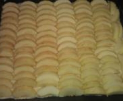 Die Apfelspalten fächerartig auf den Teig legen.