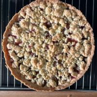 Je nach Geschmack mit etwas Zimt oder Apfelkuchengewürz verfeinern und dann die restlichen Teigstreusel darauf verteilen.