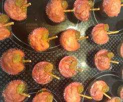 - Auf die noch flüssige Glasur das Blatt legen. Eine halbe Salzstange als Stiel oben in die Mulde stecken. Fertig sind eure leckeren und absolut echten Apfelmuffins!