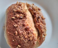 - Falls Teig übrig bleibt, forme ich ein kleines Brot, pinsele es mit dem restlichen Ei ein und streue noch Nüsse darüber, wenn noch welche da sind.