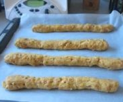 Die Stangen etwas abkühlen lassen. Danach in ca. 1 cm dicke Scheiben schneiden.