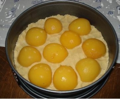 Früchte mit der Schnittfläche nach unten auf dem Streuselboden verteilen. Quarkcreme draufgeben und glatt streichen.