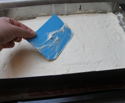 Creme auf dem fertig ausgekühlten Kuchen verteilen und glatt steichen.