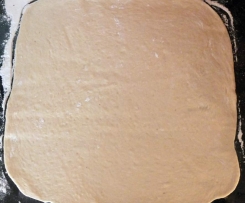 Den Teig auf einer bemehlten Arbeitsfläche zu einem Quadrat auswellen.