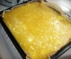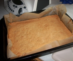 4-- Teig auf in einer form 32 x 25 einfetten oder ( Backpapier ) und goldbraun backen .---170 Grad .ca .30 Minuten .