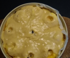 "Linkslauf" Stufe 3 zu einem Pudding kochen. - Den Pudding über den Äpfeln verteilen und den Kuchen dann