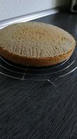 Habe den Bisquitt gebacken, der auch ganz gut geworden ist, aber in 3 Teile bekomme ich ihn nicht, dafür ist er nicht hoch genug, 2 Teile funktionieren und ergeben eine schöne Torte.