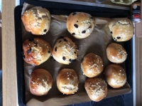 Ein Teil als Brötchen mit Rosinen und Nüssen probiert.