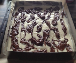 Super lecker! Ich habe bei dem Brownie Teig aufgrund der Kommentare noch einen Schuß Milch und einen Teelöffel Backpulver zugefügt- war perfekt! In einer runden Springform mit 26 cm Durchmesser 35 Minuten gebacken und mit Freunden Nachmittags gleich verspeist.