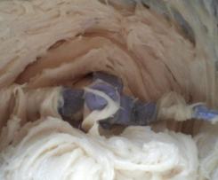 "Mixtopf geschlossen" auf Stufe 5 ein und geben die Eier nach und nach durch die Öffnung . Nach der Zugabe des letzten Eis verrühren Sie alles nochmal 30 Sek/Stufe 5.Der Teig sieht dann so aus: