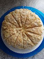 Die Springform (26 cm) einfetten und den Boden mit Backpapier auslegen. Dann den Teig eingießen, die gehobelten Mandeln darauf verteilen und danach 10 Gramm Zucker drüber streuen.