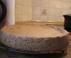 "Mixtopf geschlossen" mit hilfe des Spatels unterheben. In die gefettete Springform streichen und im vorgeheizten Backofen (Umluft 180°) 35-40 Min.backen und auskühlen lassen.Vom Tortenboden ca. 1cm dünnen Deckel abschneiden und zerbröseln. Einen Tortenring um den Tortenboden schliessen.