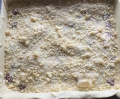 Ich wuerde es eher als eine Marzipan/Erdbeer Streusel "Tart" bezeichnen anstadt eines Crumbles. Es geht echt schnell und Gaeste werden verbluefft.
