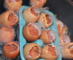 Den Teig in einen Spritzbeutel füllen und vorsichtig in die leeren Eierschalen spritzen.
