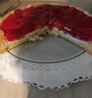 Wirklich sehr lecker und einfach, für eine 28er Form auch ausreichend wenn man ihn nicht so hoch möchte. Habe den Schmand noch mit einem Becher geschlagene süße Sahne vermischt und den Tortenguss dafür weggelassen, da bei meiner Familie nicht so beliebt.