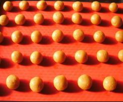 Der Teig ist sehr ölig, daher empfiehlt es sich, Einmalhanschuhe zum Rollen der Kekse zu verwenden.