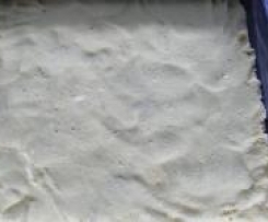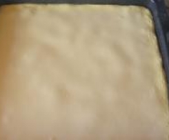 Die Fettpfanne gut einfetten. Den fertigen Teig mit bemehlten Händen gleichmäßig in der Fettpfanne verteilen. Den