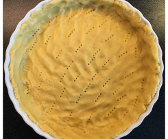 "Linkslauf" Stufe 2 um den Teig aus dem Topf zu lösenDie Pâte Sablée in eine 28cm Kuchenform geben, mit einer Gabel perforieren.